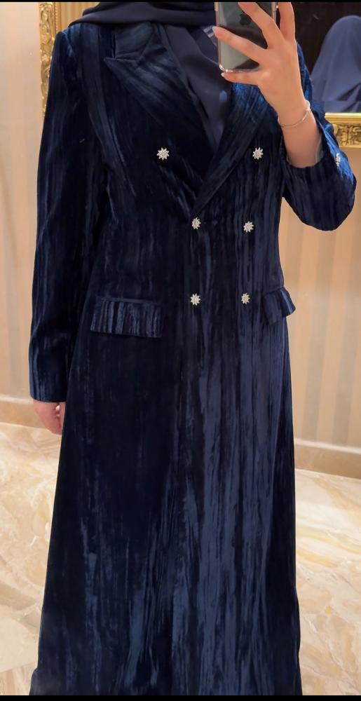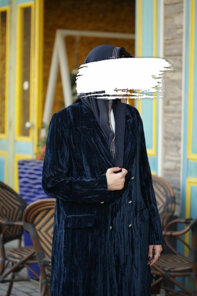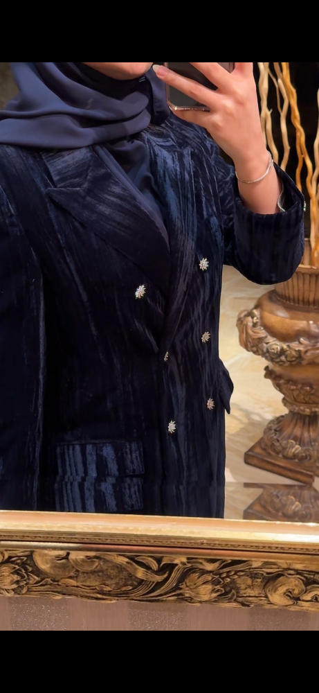 عباية مخمل مكسر او مشخط اللون الكحلي مع ازاربر سوارفسكي